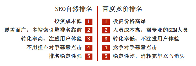 大部分高端用戶,搜索時(shí)只點(diǎn)擊自然排名結(jié)果,SEO自然排名是競(jìng)價(jià)的必備補(bǔ)充;網(wǎng)站在搜索結(jié)果前列,是網(wǎng)站“有價(jià)值,有實(shí)力”的直觀表現(xiàn)